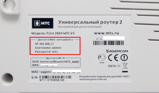 Бувають окремі випадки, коли відрізняється і IP-адресу, і навіть пароль з логіном. Це можуть бути будь-які універсальні рішення, з цієї причини, завжди звертаємо увагу на етикетку, щоб зайвий раз переконатися в своїй правоті. В нашому випадку, локальний IP залишився незмінним, а от пароль для входу був – mts.