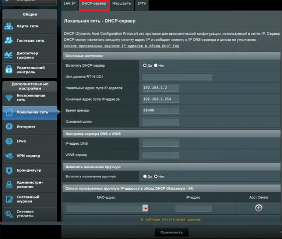 Сервер DHCP необхідний для того, щоб всі пристрої автоматично отримували IP-адреси. Якщо цей параметр вимкнено, то, отже, і всі адреси комп’ютерами виходити не будуть. На вкладці DHCP людина має право змінити деякі налаштування, а саме:
