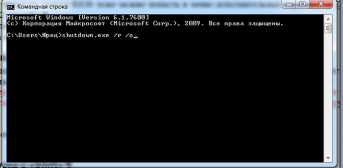Цей варіант простіше, ніж вибір панелей і перехід з пункту в пункт. У командую рядок вписують наступні значення «shutdown.exe /r /o.». ПК перезавантажиться і відправить Вас в пункти, які були описані раніше.