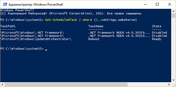 З допомогою PowerShell ми зможемо вивести всі завдання за розкладом, які присутні в ОС і можуть «будити» комп’ютер.