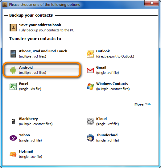 Ця програма відмінно підходить для зберігання контактів на комп’ютері і з її ж допомогою можна легко проводити копіювання контактів на різні мобільні пристрої.