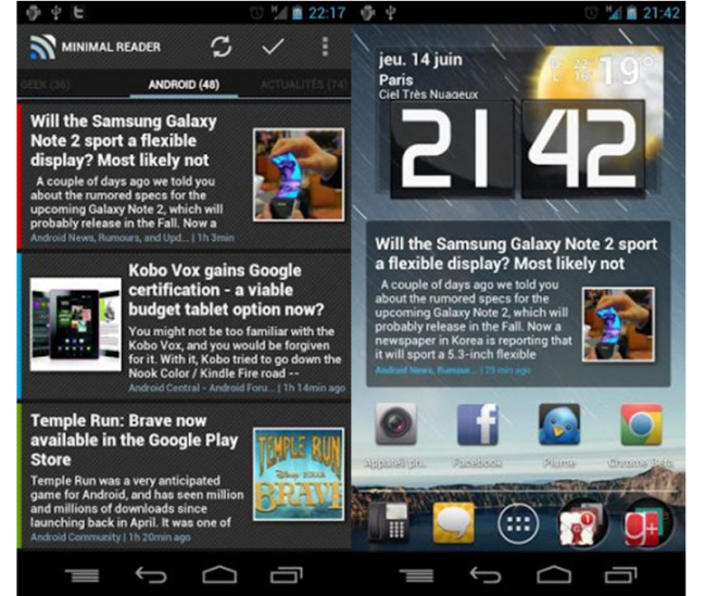 Не повернеться язик назвати цей софт повноцінним продуктом, потрібним для читання книжки на смартфоні. Говорячи простою мовою, цей софт можна назвати звичайним віджетом, потрібним для того, щоб читати новини, а також підключати до нього різноманітні RSS-стрічки. Слід зауважити, можливість виконати синхронізацію з обліковим записом Google. Все легко настроюється, з-за зрозумілого інтерфейсу і зручного меню.