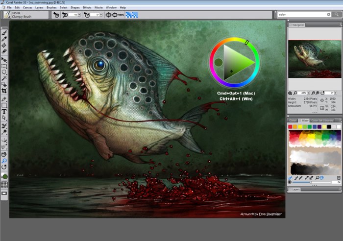 Програма Corel Painter X3 була ніби створена для того, щоб малювати пензлем. Вона вміє детально імітувати сухі і мокрі кисті, текстури та інші елементи. Все це робить процес створення картини подібно малювання художника справжніми фарбами. Для творця є більше сотні інструментів, які легко налаштувати і використовувати. Є пошук по назві кисті. Якщо ви відмінно справляєтеся з полотном в реальному житті, то цю програму ви просто зобов’язані спробувати.