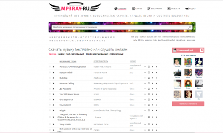 Mp3ray– останній сайт нашого списку (офіційний сайт Mp3ray.ru).