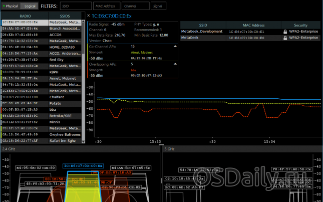 Цей інструмент виявлення мережі Wi-Fi відображає MAC-адресу кожної бездротової точки доступу, шифрування, силу сигналу і канал. inSSIDer є одним з найпопулярніших інструментів вирішення проблем з Wi-Fi на Windows, macOS і Android, але не безкоштовним.