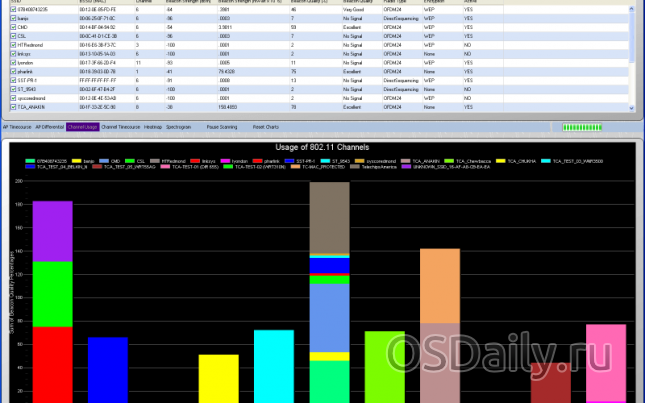 WifiInfoView володіє режимом перегляду короткого резюме, де видно всі знайдені бездротові мережі з угрупованням за номером каналу і максимальної швидкості. WifiInfoView безкоштовна та доступна тільки на Windows.