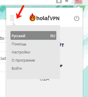 Після його установки, значок Hola з’являється праворуч від адресного рядка – це усміхнений помаранчевий вогник. Якщо він оранжевий – означає воно працює, якщо сірий – значить вимкнено. Клікнувши по вогнику, з’явиться невелике віконце.