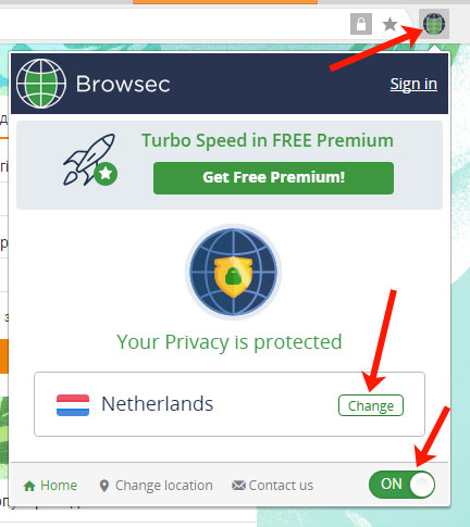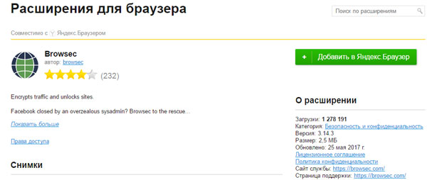 Browsec крім того, що змінює IP-адресу і дозволяє відвідувати Інтернет сторінки через VPN-сервера, ще й виконує шифрування переданого трафіку. Завдяки цьому, системний адміністратор на робочому місці не зможе відстежити, які сайти Ви відвідуєте. Ще одним плюсом цього розширення є те, що користуватися Ви зможете, навіть якщо зайшли в Windows не під обліковим записом адміністратора.