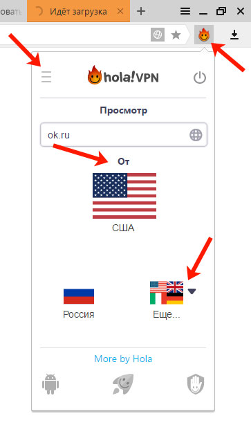 Найпопулярніше серед подібних доповнень – Hola VPN для Яндекс браузера. Воно абсолютно безкоштовно, і надає користувачеві широкий вибір різних країн, до яких можна підключитися.