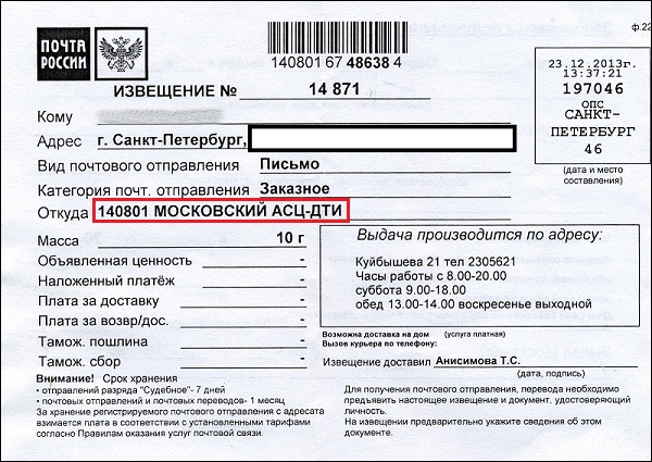 Якщо є позначка на повідомленні про Московському АСЦ ДТИ, то в більшості випадків вас очікує повідомлення з будь-якого державного та муніципального органу, з якою вам буде необхідно ознайомитися. Навіть якщо там міститься будь-яке неправомірне рішення державних або муніципальних структур, то у вас буде можливість оскаржити його протягом встановлених законом строків.