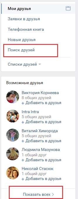 Так само є ще один варіант. Щоб не робити сильно багато кліків по пунктах меню і особливо нічого не шукати можна просто перейти за посиланням https://vk.com/friends?act=find та й все: