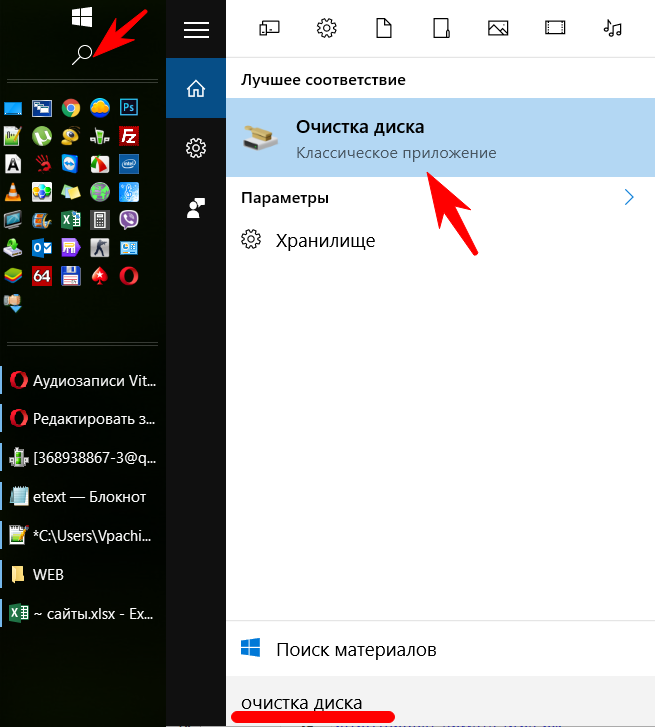 - Насамперед необхідно зайти в меню «Пуск», далі в пошуковий рядок слід ввести «Очищення диска». Виробляємо запуск утиліти.