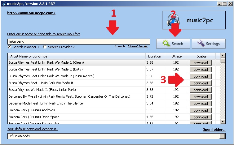 Не дивлячись на те, що Music2pc має лише англійську версію, працювати з нею — одне задоволення. За допомогою цієї програми ви завжди зможете знаходити бажані треки і завантажувати їх без особливих зусиль.