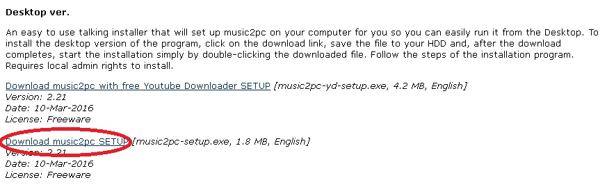 Перейдіть на офіційний сайт Music2pc, де натисніть тут, щоб завантажити інсталяційний файл, як показано на скріншоті.