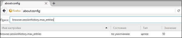 - Знайдіть параметр «browser.sessionhistory.max_entries» (він відповідає за кількість переходів вперед-назад, які пам’ятає ваш браузер), і поставте тут значення «20»;