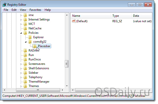 Потім аналогічним чином створіть в розділі comdlg32 новий розділ Placesbar.