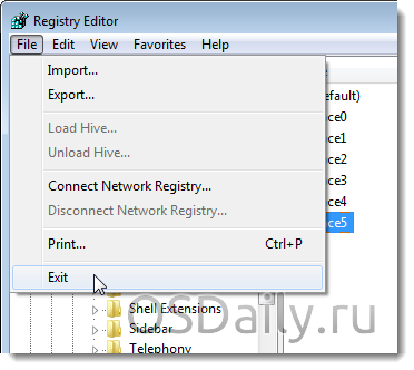 Закінчивши введення, натисніть на кнопці Вихід (Exit) з меню Файл (File), і редактор реєстру закриється.