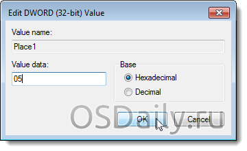 Перейменуйте новий параметр Place0. Ви можете створити до п’яти записів: Place0, Place1, Place2, Place3, Place4. Не обов’язково позначати папки всім п’яти місцях, але їх привласнення слід проводити в цифровому порядку.
