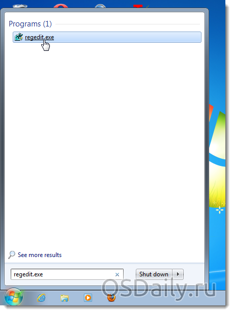 Щоб відкрити редактор реєстру, відкрийте меню Пуск (Start) і в полі пошуку введіть “regedit.exe”. Потім в результатах пошуку клікніть по посиланню regedit.exe або натисніть Enter.