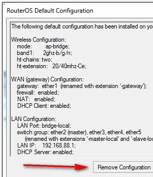 2. Після підключення з’явитися вікно налаштувань за стандартом, в ньому будуть видні всі необхідні параметри. Їх скидання можливий за допомогою кнопки «Remove Configuration».