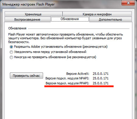 Блокувати роботу Флеш Плеєра на різних сайтах може і сам браузер, якщо у Вас встановлена для нього не остання версія. Тому слід перевірити, якої версії Флеш Плеєр встановлений на комп’ютері, оновити його.