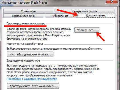 У віконці, що відкрилося, перейдіть на вкладку «Додатково» і в розділі «Перегляд даних і налаштувань» натисніть на кнопку «Видалити все…».