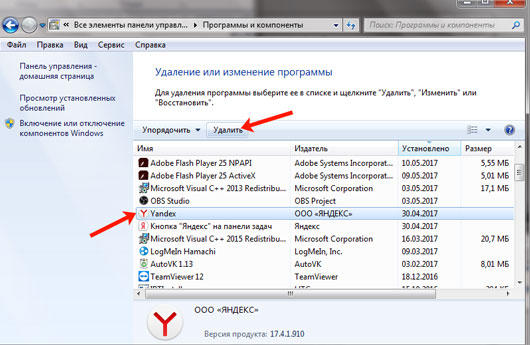 Для початку необхідно видалити Яндекс браузер. Можна скористатися стандартним видаленням в Windows, але краще для цього використовувати сторонні програми, які допоможуть почистити всі сліди.