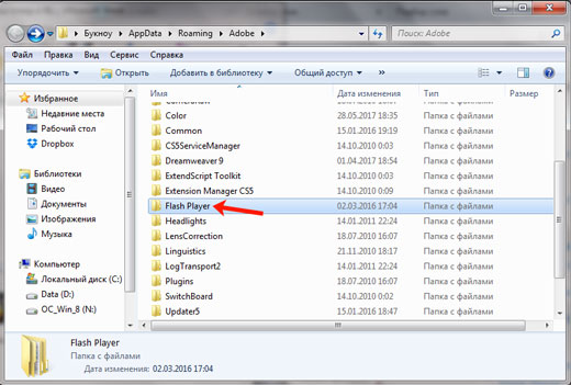 Потім знайдіть у списку папки «Flash Player» і видаліть її. Після цього перезавантажте комп’ютер.