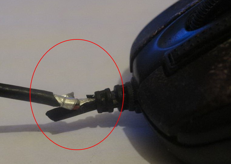 - Як показує практика, найбільш найчастіше дротові мишки виходять з ладу в результаті пошкодження з’єднувального шнура. Схильні до різних проявів несприятливих моментів експлуатації, будь то деформація шнура у вигляді перегину або фізичне пошкодження захисної оболонки кабелю, слід прийняти такого роду незручності як даність недосконалості реалізованої технології. В таких випадках простіше купити новий маніпулятор, ніж відновлювати непрацездатний девайс управління. Однак озброївшись мультиметром завжди можна виявити контактний обрив, а далі, замінити провід на пошкодженій ділянці.