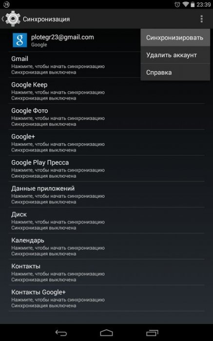 Відразу після цього, вам потрібно вибрати ті пункти, синхронізацію яких ви хочете провести. Природно, саме процес синхронізації допомагає домогтися збереження потрібної інформації на облікового запису, тобто після повторного підключення, вся потрібна інформація буде автоматично повернуто на законне місце.