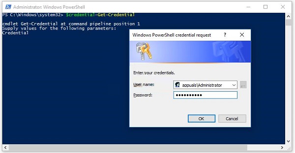 - Введіть назву облікового запису адміністратора домену, пароль та натисніть «Ок»;