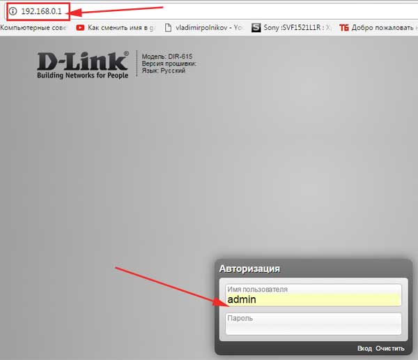 У мене Dlink Dir-650. Заходжу в налаштування. Для цього в браузері пишу адресу 192.168.0.1. Вискакує віконце, в якому потрібно ввести логін і пароль від роутера.