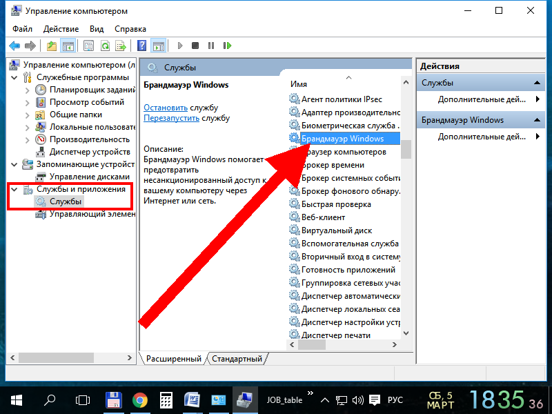 • З представленого списку вам необхідно задіяти службу «Брандмауер Windows».