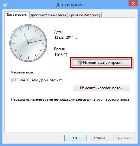 Для установки коректних дати і часу наведіть курсор миші на відображення дати і часу праворуч внизу (на ПК), натисніть праву клавішу миші, і в контекстному меню виберіть «Налаштування дати і часу» — «Змінити дату і час».