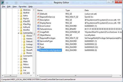 • Тепер перейдіть по шляху HKEY_LOCAL_MACHINESYSTEMCurrentCotrolSet далі ServecesLanmanServerParameters.