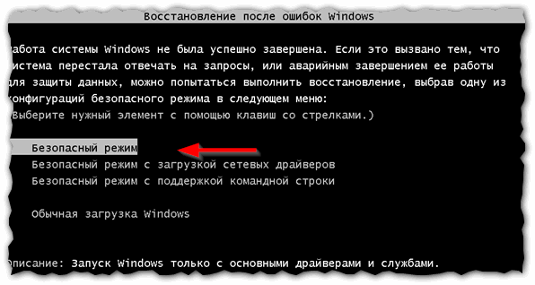 • Знову під час завантаження натисніть F8 для того, щоб вибрати безпечний режим завантаження операційної системи.