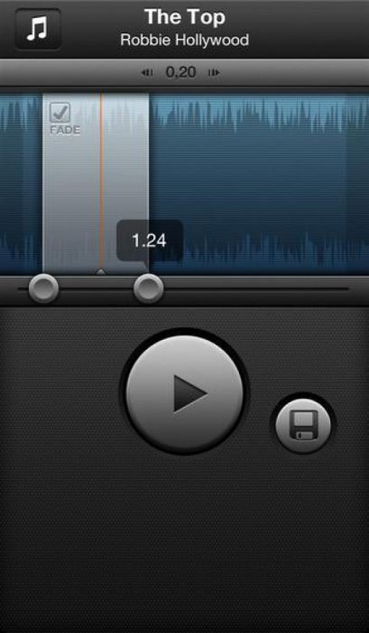 Зовні програма максимально спрощена. Вам потрібно лише вибрати в директорії трек , визначити необхідні кордону, а після натиснути на кнопку «Save» і рінгтон тут же створиться.