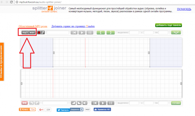 Splitter&Joiner – знаходиться на сайті Mp3cut.RU, спеціальний інструмент наданого редактора дозволяє обрізати, нарізати, вкоротити пісню за кілька секунд в онлайн режимі. Користувачам доступні 2 види файлів для обробки: MP3 і WAV.