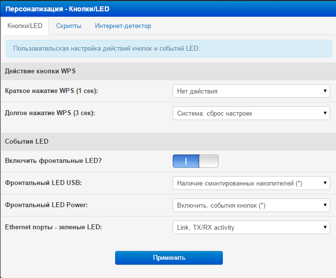 Настройка кнопок/індикаторів роутера, використання скриптів, здійснення моніторингу доступу до мережі і виконання певної дії в залежності від результату.