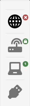Як бачите, все виглядає дуже симпатично. Натиснувши на значки по центру екрана можна дізнатися про стан Інтернет, стані бездротової мережі. про підключених клієнтів і використовується накопичувачі. Також є можливість швидко змінити необхідні параметри налаштувати підключення до мережі Інтернет, змінити налаштування бездротової мережі, заблокувати певних користувачів і налаштувати доступ до накопичувача.
