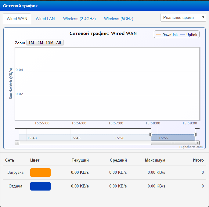 Статистика трафіку по всіх інтерфейсів в режимі реального часу.