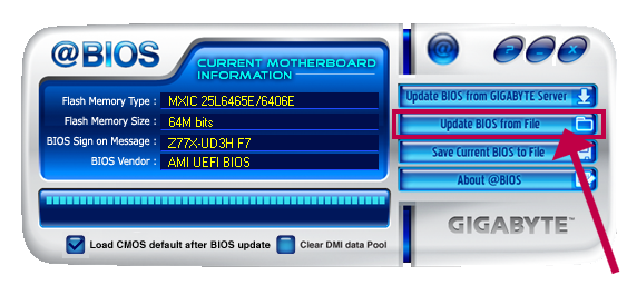 - Активуйте у додатку @BIOS вкладку «Оновлення BIOS from file».