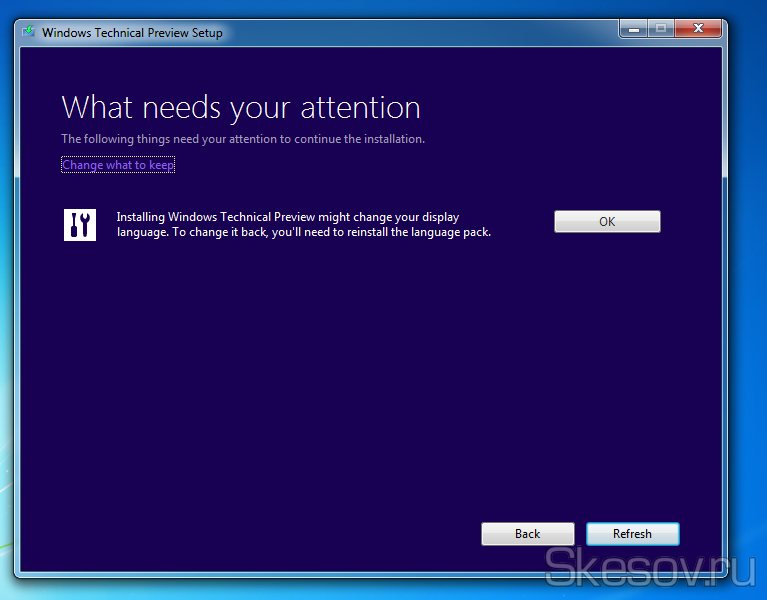 Якщо ви користувалися російськомовної ОС, установник вас попередить про те, що мовний пакет буде втрачено. Тиснемо ОК.