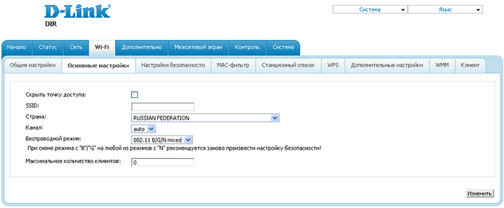 Для налаштування Wi-fi на DIR-300 необхідно зайти на головну сторінку налаштувань роутера, клікнути «Налаштувати вручну», вибрати вкладку «Wi-Fi». Потім зайти у вкладку «Основні налаштування». Задаємо наступні параметри: