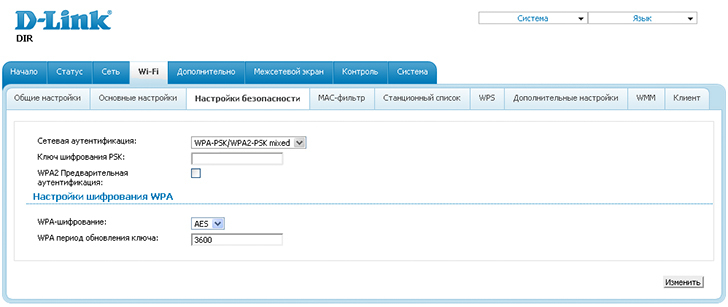 • Мережева автентифікація — безсумнівно WPA2-PSK, як найбільш захищений.