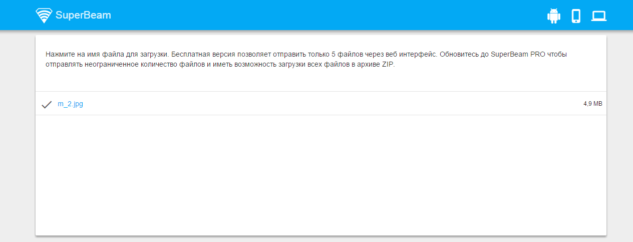 У даній статті ми розглянемо SuperBeam — простий і зручний засіб для передачі файлів за допомогою Wi-fi з комп’ютера на мобільний пристрій і назад, а також обмін файлами через Wi-fi між 2 мобільними пристроями.