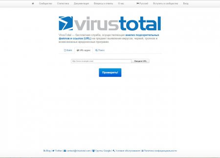 VirusTotal являє собою абсолютно безкоштовний сервіс для перевірки файлів і посилань на наявність вірусів, шкідливих програм і т. д. Скористатися ним можна перейшовши за посиланням virustotal.com/ru