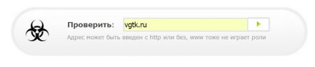 Як ви вже могли помітити сервіс трохи схожий з попереднім від компанії Dr.Web. Він також має рядок для вставки посилання, а також кнопку перевірити. Для прикладу я знову проаналізую наш сайт vgtk.ru.