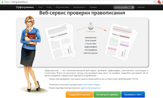 Наданий сервіс, є одним з найстаріших сервісів всього рунета. До нього немає ніяких претензій, і користувачі користуються їм, довіряють йому, так як сервіс перевірений часом. Тут можна не тільки подивитися які слова були неправильно написані, але ще й переглянути тлумачення того чи іншого слова в словнику, подивитися на його наголос, можливо синоніми.