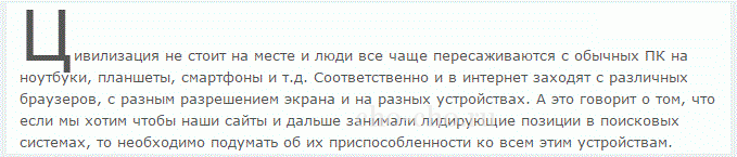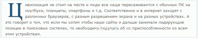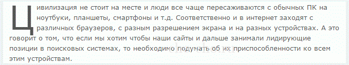 Ви вже уявляєте, як буде виглядати буквиця у тексті при використанні плагіна Simple Drop Cap? В налаштуваннях плагіна існує 3 способи виведення буквиці в тексті. Як налаштувати плагін, буде пояснено пізніше, а зараз погляньте, як можуть виглядати буквиці.
